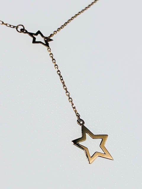- Gold Necklace with Two Stars Integrated Pendant